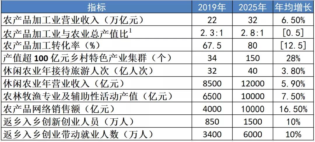 到 2025 年,鄉(xiāng)村產(chǎn)業(yè)體系健全完備,鄉(xiāng)村產(chǎn)業(yè)質(zhì)量效益明顯提升,鄉(xiāng)村就業(yè)結(jié)構(gòu)更加優(yōu)化,產(chǎn)業(yè)融合發(fā)展水平顯著提高,農(nóng)民增收渠道持續(xù)拓寬,鄉(xiāng)村產(chǎn)業(yè)發(fā)展內(nèi)生動力持續(xù)增強(qiáng)。