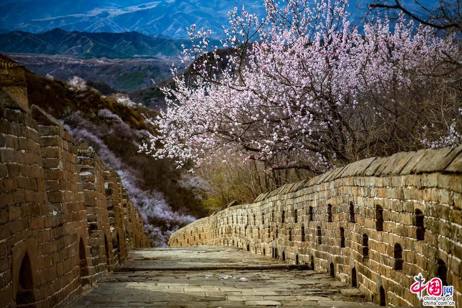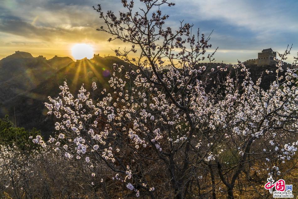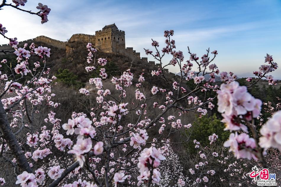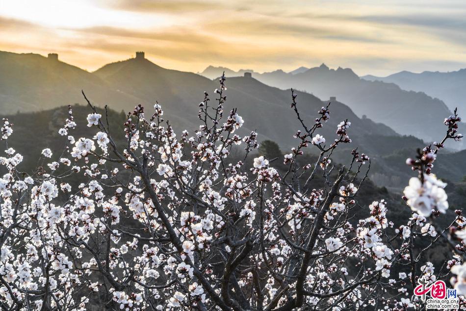 原標(biāo)題:杏花與長(zhǎng)城共存美輪美奐 金山嶺長(zhǎng)城恍如人間天堂