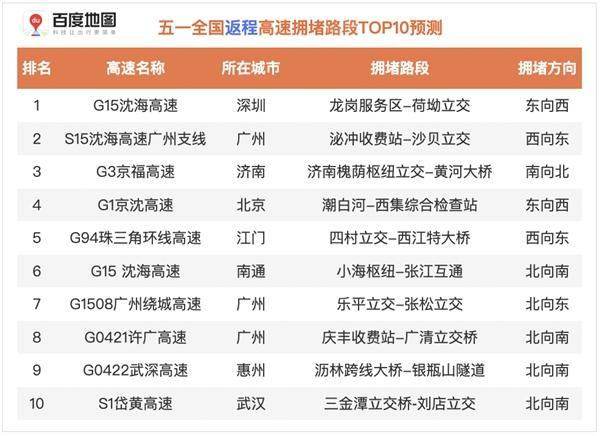 ?。?021年五一假期去程高速擁堵路段TOP10預(yù)測)