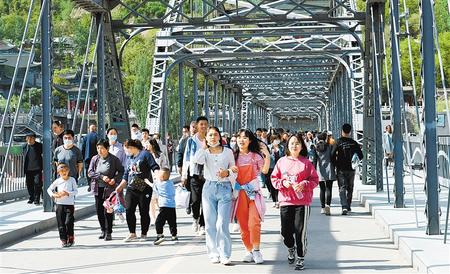 5月5日,蘭州中山橋上游人如織。新甘肅·甘肅日?qǐng)?bào)記者 呂亞龍