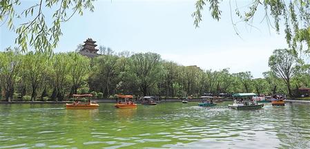 5月1日,游客在平?jīng)鍪辛珗@泛舟,享受假日美好時(shí)光。新甘肅·甘肅日?qǐng)?bào)通訊員 吳希會(huì)