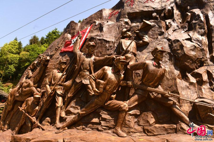 如今,這條紅色旅游線路是前來(lái)雪峰山旅游的必走之地。旅客在陳列室里閱讀紅二、六軍團(tuán)經(jīng)過(guò)之情形;在紅軍亭,旅客仿佛看到聽(tīng)到紅軍父母送子、妻子送丈夫的3000溆浦兒女參加紅軍的感人場(chǎng)面;在“勝利的號(hào)角”前,旅客紛紛拍照,表達(dá)一定在新的歷史進(jìn)程中作出新的貢獻(xiàn);在“紅軍長(zhǎng)征”群雕前,小孩子們最感興趣,在這里敬禮,在這里發(fā)誓,長(zhǎng)大后一定弘揚(yáng)紅軍長(zhǎng)征精神……