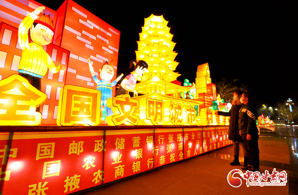 春節(jié)臨近,甘肅省張掖市甘州區(qū)文化廣場(chǎng)、公園等地,各種大型彩燈把城市裝扮得火樹銀花、璀璨繽紛,大街小巷彰顯著歡樂喜慶的節(jié)日氣氛,年味十足。