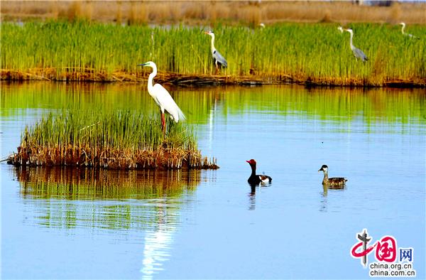 很多鳥類對生存區(qū)域極為挑剔,環(huán)境稍不如意,便會另覓佳處。這里水質清冽,空氣純凈,湖草肥美,魚食豐盛,正是很多鳥類遠途中的理想家園或行途驛站。據(jù)悉,全球九條候鳥遷徙路線中有三條路過中國,其中有兩條遷徙路線在寧夏重疊,沙湖以其良好的自然生態(tài)環(huán)境,為眾多候鳥過境寧夏時提供了重要棲息繁衍地。