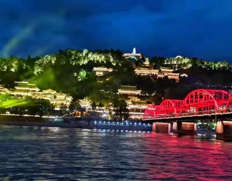在這條美麗的河畔邊,政府打造的新型地標(biāo)建筑更為這條母親河添上華麗的一筆。夜晚,在美麗的黃河之濱,黃河樓作為蘭州市新地標(biāo),在節(jié)日期間展開(kāi)震撼人心的幻影燈光秀,不僅有伴隨著音樂(lè)鼓點(diǎn)不斷變化的彩燈交織環(huán)節(jié),更有一場(chǎng)富有歷史文化色彩的燈光與水霧交融的真人演繹表演。從蘭州歷史文化淵源追溯,至現(xiàn)代智慧蘭州,文明蘭州,黃河樓以燈光和音樂(lè)及特效的多方位演繹形式,為在場(chǎng)的市民及游客打開(kāi)一番與眾不同的視覺(jué)盛宴。一位來(lái)自嘉峪關(guān)的游客告訴記者:“美麗的燈光秀給我心靈上帶來(lái)了震撼,它不僅僅是視覺(jué)上的刺激,更帶有蘭州這座古城更深層的文化底蘊(yùn),讓我們了解到黃河文化,絲路文化,了解到金城蘭州的歷史故事,更對(duì)現(xiàn)代蘭州、智慧蘭州和文明蘭州產(chǎn)生深刻的了解和憧憬。”