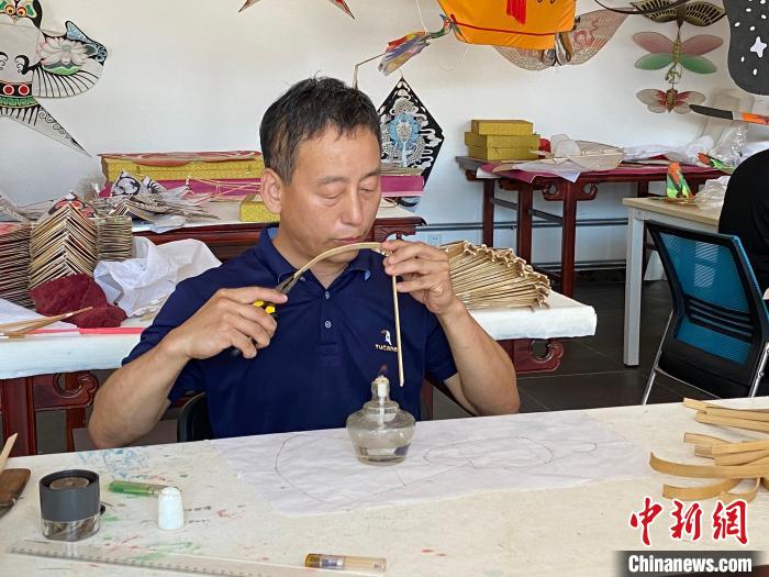 第什里風箏第五代傳承人趙艷強正在烤制竹條。李玉素 攝