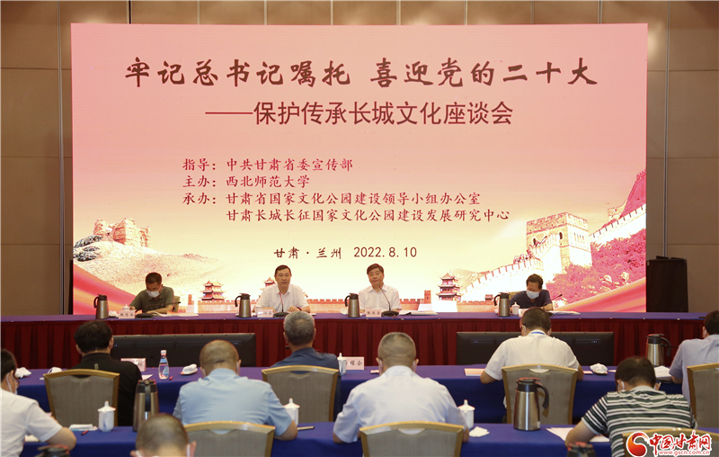 中國甘肅網(wǎng)8月10日訊(本網(wǎng)記者 程健 宋芳科)8月10日下午,由中共甘肅省委宣傳部指導(dǎo),西北師范大學(xué)主辦,省國家文化公園建設(shè)領(lǐng)導(dǎo)小組辦公室、甘肅長城長征國家文化公園建設(shè)發(fā)展研究中心承辦的“牢記總書記囑托 喜迎黨的二十大——保護(hù)傳承長城文化座談會”在蘭召開。省委宣傳部副部長李潤強(qiáng)出席并講話。西北師范大學(xué)黨委書記、甘肅長城長征國家文化公園建設(shè)發(fā)展研究中心主任張俊宗主持座談會并致辭。