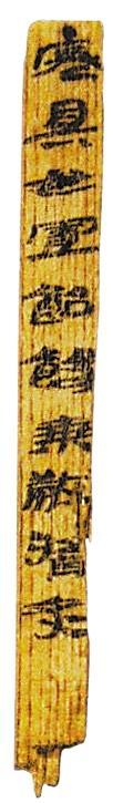 1990年這枚木簡出土于敦煌懸泉置遺址,現(xiàn)藏甘肅簡牘博物館。長7.7厘米、寬0.8厘米、厚0.2厘米。木簡下部殘缺,字跡清楚,簡文作“寒具毋置飴餳乘□醬炙”,其中提到的“飴餳”即兩種糖類之名,該簡文為研究兩漢時期河西飲食習(xí)俗和制糖史提供了資料。