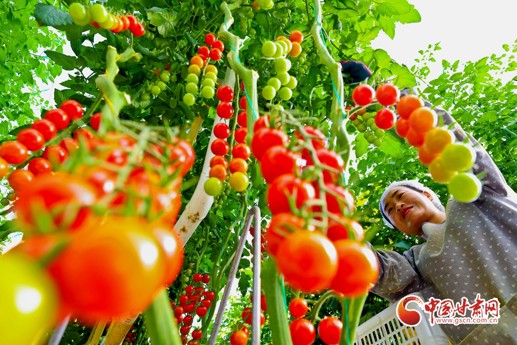 8月30日,張掖市民樂縣樂民新城的群眾正在海升現代農業(yè)集團內工作。
