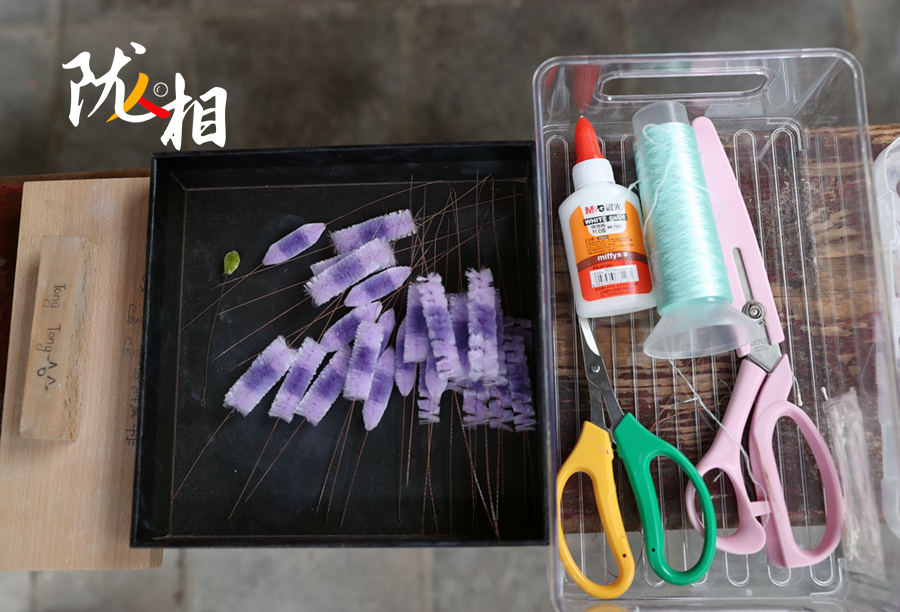 排線、栓銅絲、裁剪寬度、勾挑搓絲、打尖、傳花,每一個(gè)制作過程都需要耐心,制作一朵簪花少說也要一周時(shí)間。對于宗怡彤來說,學(xué)會(huì)簪花,也就學(xué)會(huì)了靜下心來面對一切,在沉浸的時(shí)光,心無旁騖,才能享受最終的賞心悅目。