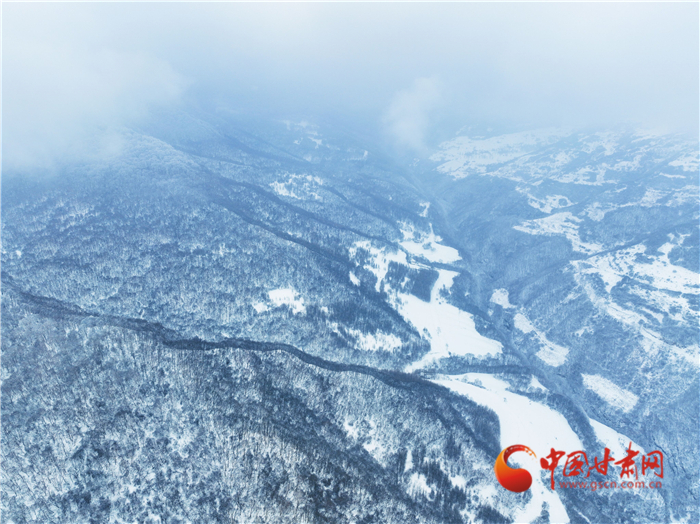 雪花像是美麗的精靈飄落山間,又像是上帝手中的畫筆,勾勒出了一幅優(yōu)美的水墨世界,正如詩句一樣“白雪卻嫌春色晚,故穿庭樹作飛花”。遠處大霧又為關(guān)山蓋上了神秘的面紗,層層疊疊,仙氣繚繞,令人嘆為觀止。