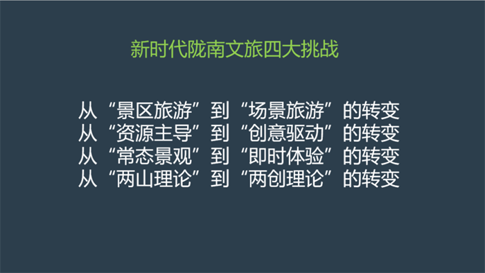 作為具備后發(fā)優(yōu)勢的隴南,在推進文旅康養(yǎng)產(chǎn)業(yè)發(fā)展的過程中,我們必須認識和應對這四大轉(zhuǎn)變或調(diào)整,“謀定而動”,否則,如果我們還以傳統(tǒng)的方式追求建設(shè)景區(qū),有可能做出來的大項目,是過時的,過期的,是被當下的旅游消費者所遺棄的。