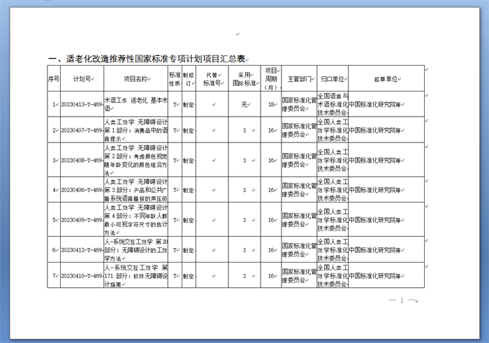 國(guó)家標(biāo)準(zhǔn)化管理委員會(huì)(以下簡(jiǎn)稱國(guó)家標(biāo)準(zhǔn)委)發(fā)布《關(guān)于下達(dá)適老化改造推薦性國(guó)家標(biāo)準(zhǔn)專項(xiàng)計(jì)劃及相關(guān)標(biāo)準(zhǔn)外文版計(jì)劃的通知》(以下簡(jiǎn)稱《通知》)。《通知》稱,為實(shí)施積極應(yīng)對(duì)人口老齡化國(guó)家戰(zhàn)略,對(duì)照全國(guó)政協(xié)關(guān)于加快推進(jìn)社會(huì)適老化改造的民主監(jiān)督事項(xiàng),經(jīng)研究,國(guó)家標(biāo)準(zhǔn)化管理委員會(huì)決定下達(dá)適老化改造推薦性國(guó)家標(biāo)準(zhǔn)專項(xiàng)計(jì)劃及相關(guān)標(biāo)準(zhǔn)外文版計(jì)劃(附后)。本批適老化改造領(lǐng)域推薦性國(guó)家標(biāo)準(zhǔn)專項(xiàng)計(jì)劃共計(jì)39項(xiàng),其中制定35項(xiàng)、修訂4項(xiàng)。