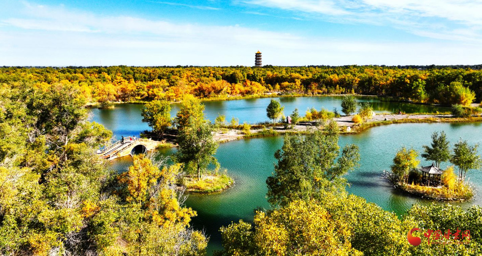 “風(fēng)景特別美,天很藍(lán),樹葉也金黃金黃的,早上我在金波湖這邊拍出來的照片整個(gè)都很好看,下午我還想著拍日落,把美景都用鏡頭記錄下來。”攝影愛好者袁東表示這次來胡楊林收獲滿滿。