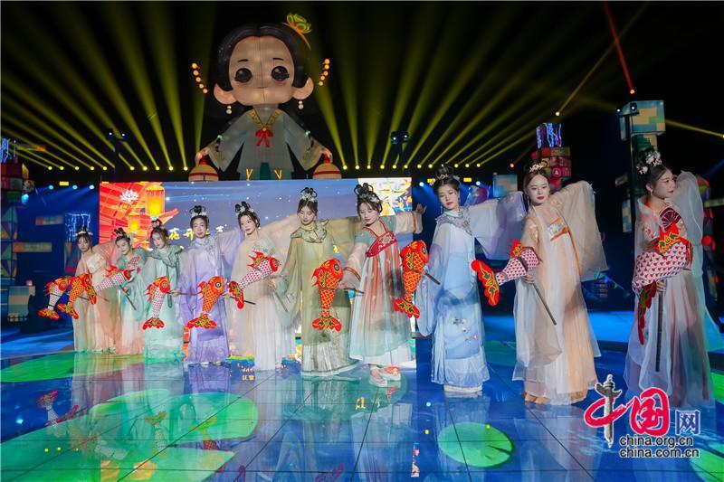 水鄉(xiāng)錦鯉,有福有喜,錦鯉飛魚(yú)秀徜徉在舞臺(tái)與燈組之間。