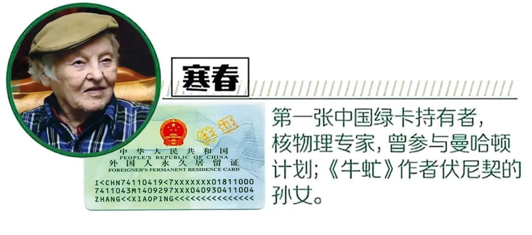 2004年8月15日,《外國人在中國永久居留審批管理辦法》正式頒布,規(guī)定外籍人申請合格者將獲得中國政府頒發(fā)的“外國人永久居留證”,我國正式開始實(shí)施外國人永久居留證管理制度。人們仿照國際慣用說法,稱中國開始實(shí)施“綠卡”制度,中國“綠卡”進(jìn)入2.0時代。持證者在中國的居留地、住房和就業(yè)皆不受限制,出入中國國境無須再簽證。綠卡不是國籍的變更,但是拿到綠卡的外籍友人在中國出入境,工作、旅行、生活會更加方便。拿到中國第一張“外國人永久居留證”的是放棄了自己心愛的核物理研究,而且不畏難苦,扎根農(nóng)村,為中國的奶牛改良工作奮斗了一輩子的美國知名核物理學(xué)家寒春。