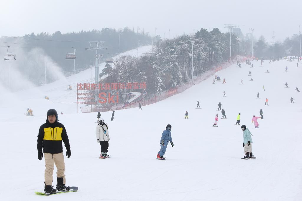 滑雪愛好者在沈陽(yáng)市東北亞滑雪場(chǎng)滑雪。新華社記者陳為 攝