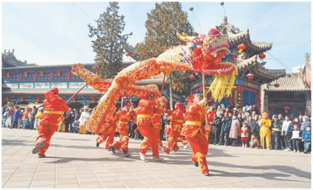 安定現(xiàn)龍山秧歌會在玉湖公園舞龍。  牛小棟 攝
