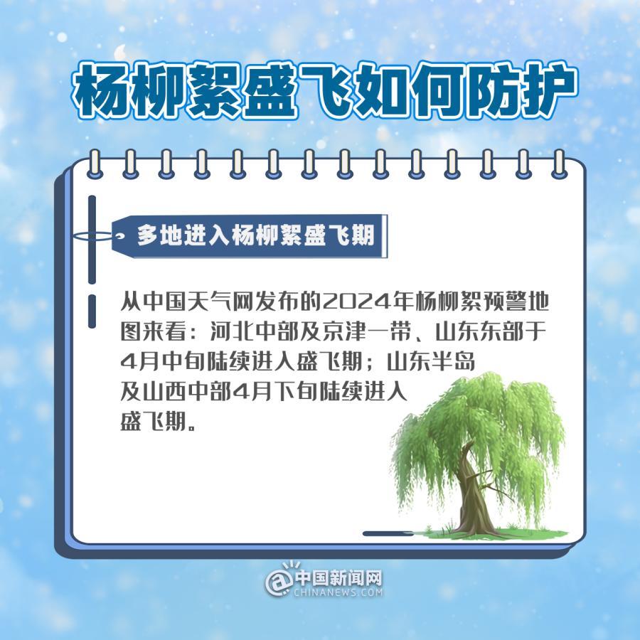 從中國(guó)天氣網(wǎng)發(fā)布的2024年楊柳絮預(yù)警地圖來看:河北中部及京津一帶、山東東部于4月中旬陸續(xù)進(jìn)入盛飛期;山東半島及山西中部4月下旬陸續(xù)進(jìn)入盛飛期。楊柳絮都有哪些危害?公眾日常如何做好防護(hù)?