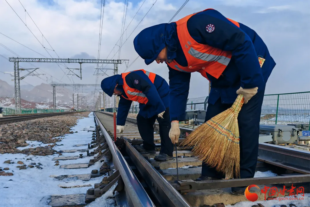 武威工務(wù)段芨嶺、山丹線路車間以雪為令,組織干部職工清掃道岔尖軌、滑床板、轉(zhuǎn)轍機等關(guān)鍵部位的積雪積冰,確保線路狀況良好。