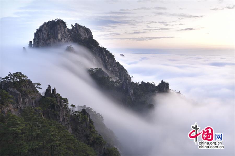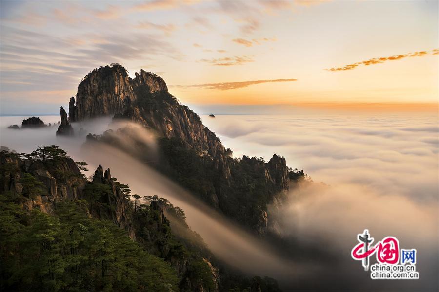 原標(biāo)題:只有一個(gè)黃山:最美“瀑布云”凌空而下(組圖)