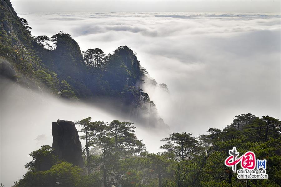 每年11月是黃山瀑布云頻頻出現(xiàn)的季節(jié),經(jīng)過(guò)前日的降雨和降溫,連續(xù)多天都出現(xiàn)了氣勢(shì)磅礴的“瀑布云”景觀。