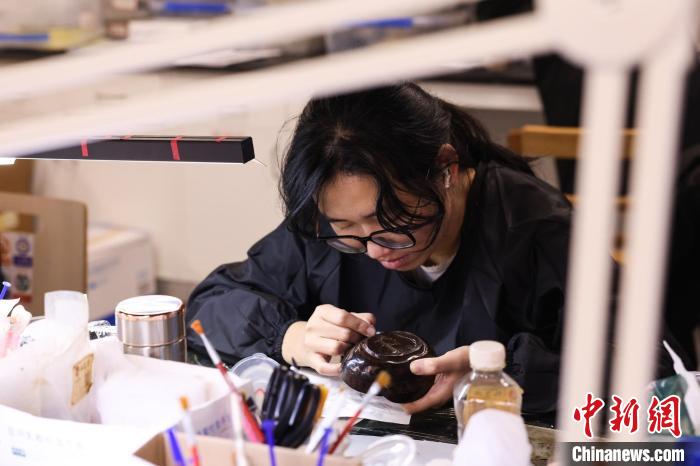 江西省文物考古研究院的丁金果也是“00后”,且參與了新展出漆器的修復。她表示,?;韬钅钩鐾恋钠崞髟谒薪萘嗽S久,大多數(shù)漆器已經(jīng)嚴重變形、破碎。經(jīng)過清洗、脫水、矯形、粘接、髹漆等諸多步驟,這些漆器便能再現(xiàn)原貌,但也需要大量的時間去修復。