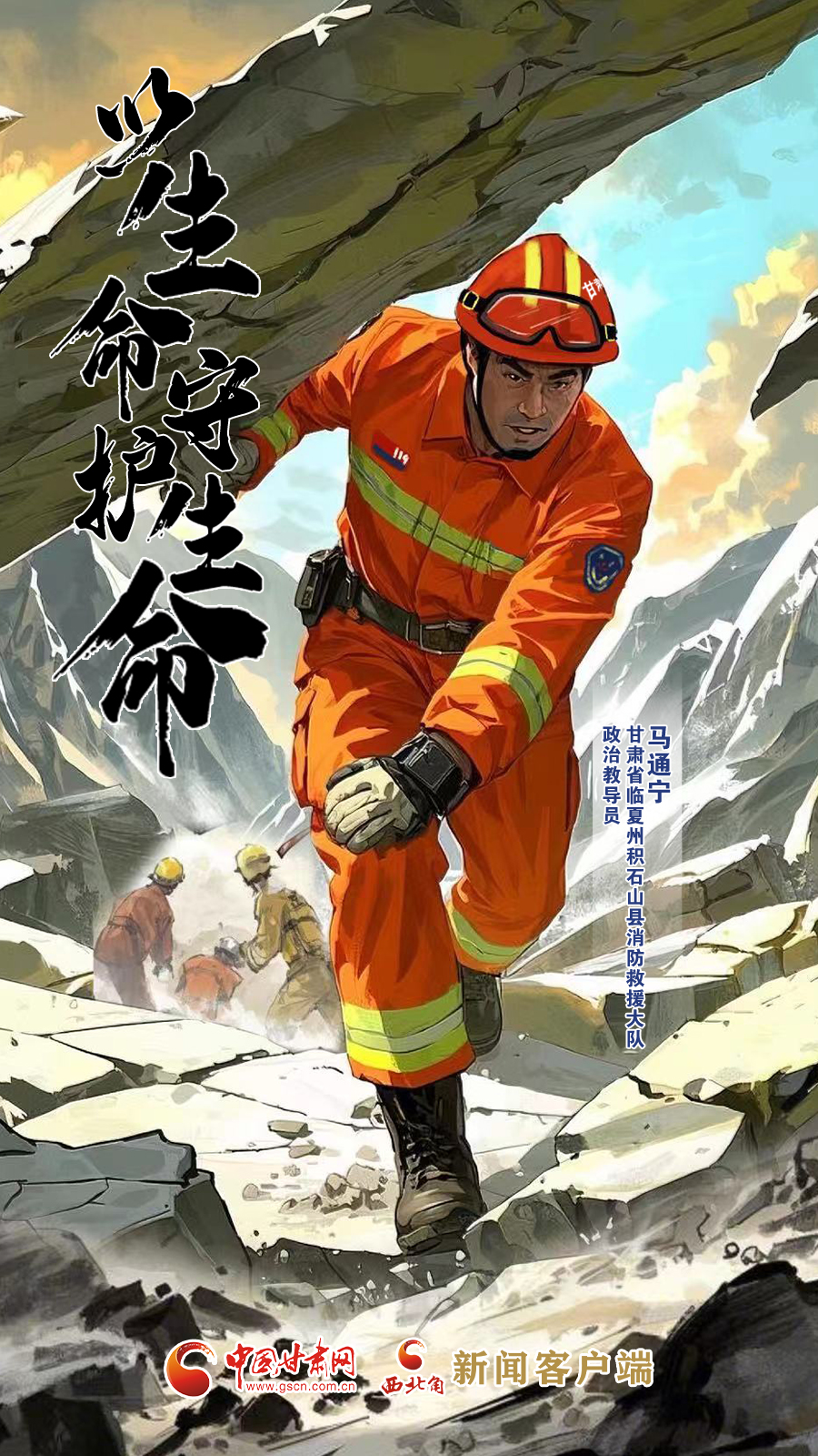 手繪海報|甘肅省臨夏州積石山縣消防救援大隊政治教導(dǎo)員馬通寧:以生命守護(hù)生命