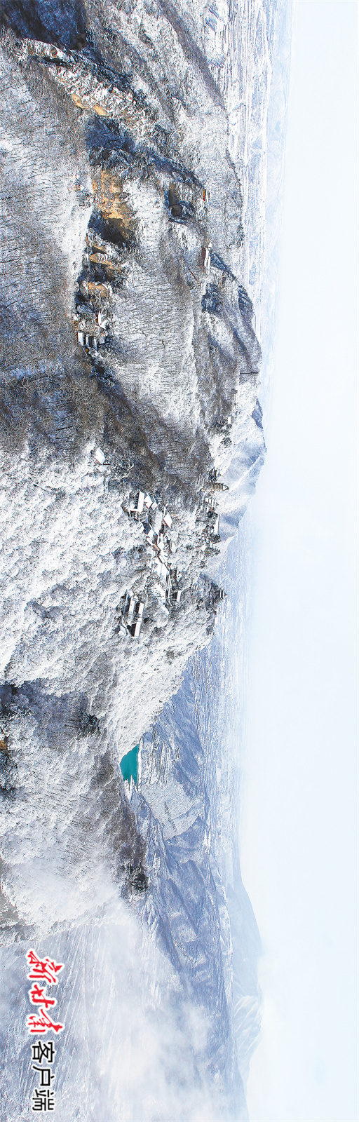 連綿起伏的山巒被皚皚白雪覆蓋,整個(gè)山區(qū)變得寧靜祥和,宛如走入了如詩如畫的雪國,天地浩然一色。
