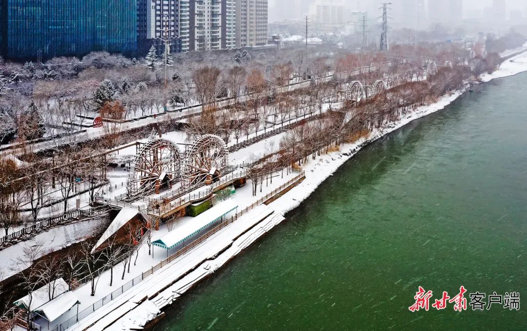 蘭州黃河兩岸銀裝素裹,美不勝收。新甘肅·甘肅日報(bào)記者 孟捷