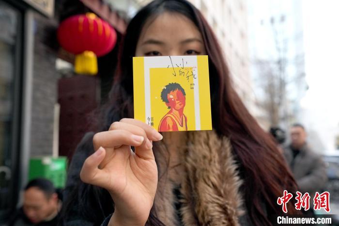 12月31日,四川成都,面館自制的紀念卡片。近日,隨著電影《小小的我》的熱映,電影中男主角劉春和與外婆吃肥腸粉的一家成都面館成為熱門打卡點。中新社記者 安源 攝