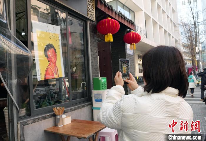 12月31日,四川成都,影迷在面館拍照留念。中新社記者 安源 攝