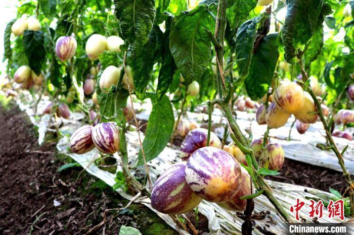 人參果屬茄科多年生草本植物,耐瘠薄、抗寒冷、抗鹽堿,是一種生態(tài)適應(yīng)性較強(qiáng)的草本植物。2007年,民勤縣引入人參果,重點(diǎn)以日光溫室種植方式為主,經(jīng)過十多年的試驗(yàn)示范和逐步發(fā)展,現(xiàn)生產(chǎn)規(guī)模達(dá)到2.1萬畝,占全國設(shè)施種植規(guī)模的30%以上,成為全縣日光溫室生產(chǎn)的主導(dǎo)品種,當(dāng)?shù)剞r(nóng)業(yè)產(chǎn)業(yè)發(fā)展的一張亮麗名片。