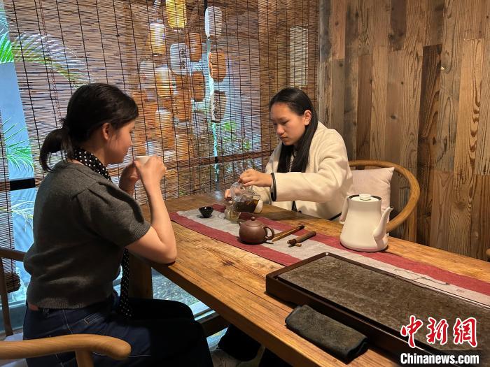 22歲的顧客吳聿嘉表示,“除了到戶外尋找春天,我們還喜歡在茶館感受慢生活、松弛感的飲茶體驗,喝一杯春茶,品味舌尖上的春天”。