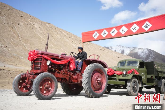 紅色“55輪式拖拉機(jī)”名叫“鐵牛”,前杠上寫著“出生年月”:1979年10月。微電影《五十七公里》中,張?zhí)煳妮d著戲中主持修路的陶書記,在牧民們的歡呼雀躍中,將它開進(jìn)通車典禮現(xiàn)場。