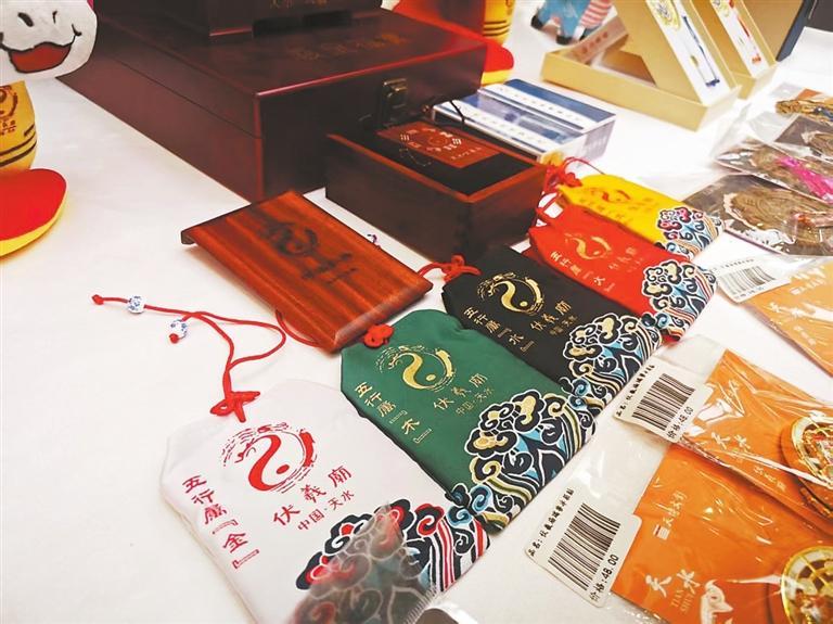 天水伏羲廟的文創(chuàng)產(chǎn)品河洛掛牌也很受歡迎。“掛牌是用天水伏羲廟的側(cè)柏制作的,掛牌正面是太極八卦圖,背面是河圖洛書,側(cè)面是北斗七星,十分精美,寓意美好。”天水市博物館文化產(chǎn)業(yè)部工作人員楊萱慧說,“我們還特意為掛牌制作了5種顏色的收納包,分別代表‘金、木、水、火、土’,大家可以按自己喜好選購收納包來收納河洛掛牌。”