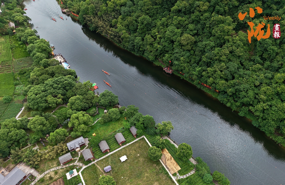 這里滿目青翠,云遮霧罩,山川形勝,樹影婆娑,綠波蕩漾,能讓你感受到,“舟在碧波上,人在畫中游”的詩(shī)情畫意。在這青山綠水間,一個(gè)個(gè)青瓦白墻的新農(nóng)村被綠樹掩映,溪流潺潺,宛如一幅幅動(dòng)人的畫卷。