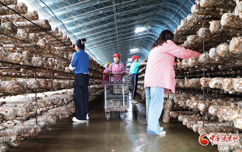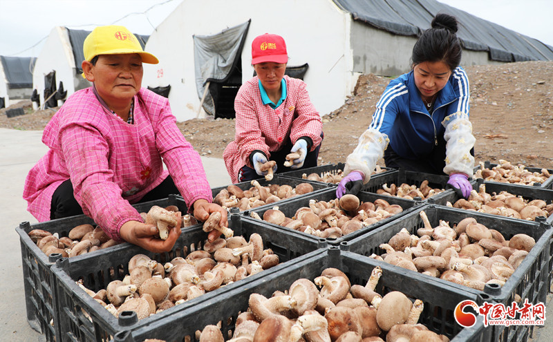 6月26日,在民樂(lè)工業(yè)園區(qū)的一家食用菌生產(chǎn)溫室內(nèi),工人們正在采摘成熟的香菇和靈芝,包裝完成后將運(yùn)往青海、寧夏、新疆等地銷(xiāo)售。