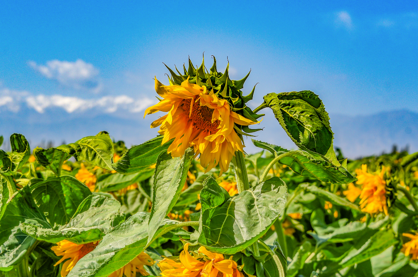 中國甘肅網(wǎng)7月14日訊 據(jù)嘉峪關日報報道(融媒體中心記者 李巍 攝)近日,嘉峪關市新城鎮(zhèn)野麻灣村“千畝”制種向日葵迎來盛花期,朵朵花盤匯聚成金色花海,放眼望去,與雪山相融、與藍天相接,如詩如畫,美不勝收。