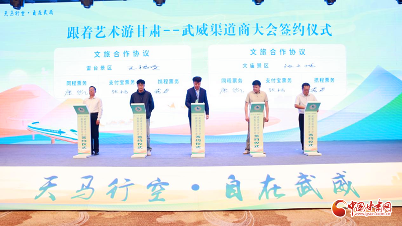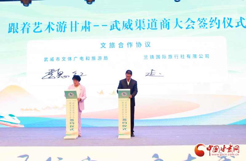 隨后舉行集中簽約儀式。武威市文體廣電和旅游局分別與中國旅行社協(xié)會(huì)鐵道旅游分會(huì)、甘肅蘭鐵國際旅行社有限公司簽署合作協(xié)議。