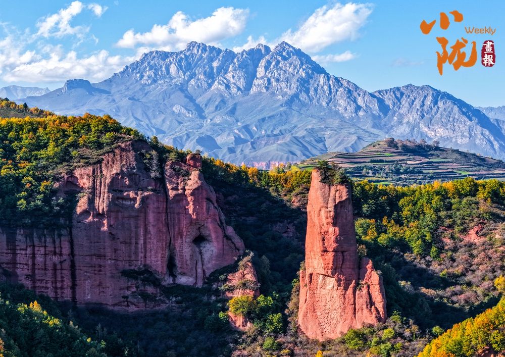 俯瞰整個(gè)冶力關(guān),遠(yuǎn)處的雪峰在陽(yáng)光照耀下泛著銀光,與近處的彩林形成鮮明對(duì)比,宛如一幅氣勢(shì)磅礴的山水畫(huà)卷。