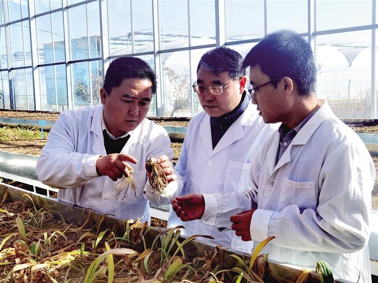蘭州百合優(yōu)質(zhì)種源高效開發(fā)關(guān)鍵技術(shù)“揭榜掛帥”項(xiàng)目承擔(dān)方查看百合生長(zhǎng)情況