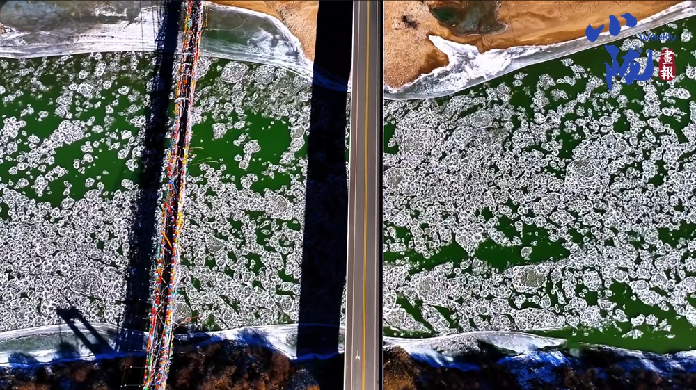 流動的黃河化為靜止的冰帶,與沉睡的遠山、沉寂的曠野共同組成一個浩瀚、純粹而充滿張力的寒原地理空間。