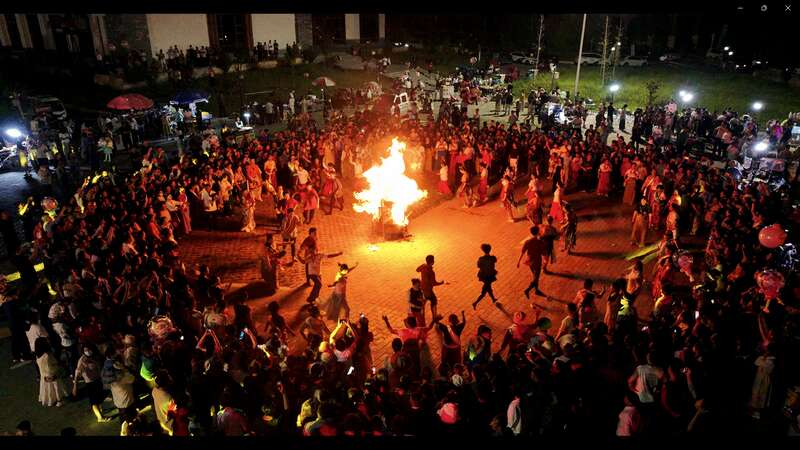 2025年7月,西北師范大學(xué)師生實踐團在新聯(lián)村舉辦篝火晚會。受訪者供圖