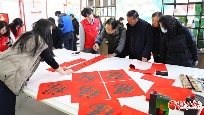 春節(jié)臨近,民樂縣組織群眾文化志愿者服務隊開展“翰墨迎春”公益文化活動,志愿者現(xiàn)場揮毫潑墨書寫春聯(lián),為群眾書寫春聯(lián)和“福”字,讓群眾在家門口享受“文化大餐”,迎接新春佳節(jié)的到來。