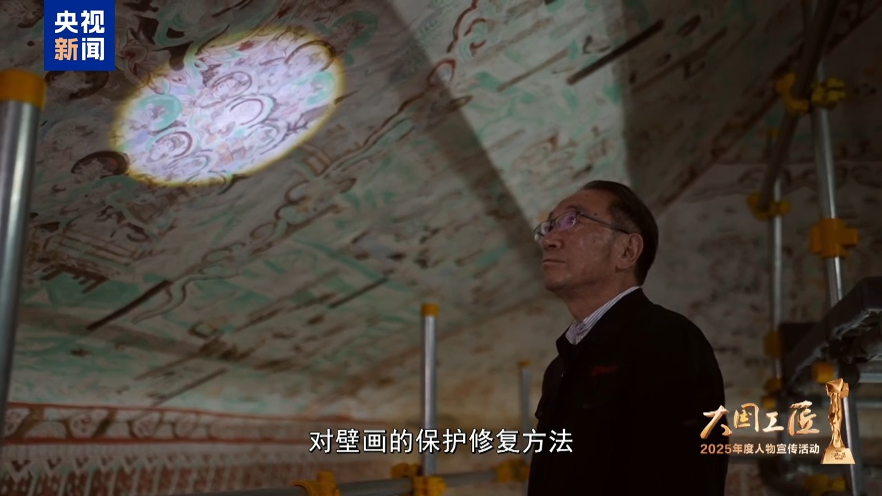 2025年大國(guó)工匠年度人物、敦煌研究院壁畫保護(hù)修復(fù)專家 樊再軒:這里,是我守護(hù)一生的地方——敦煌莫高窟,它是大漠深處矗立千年的文明圣殿。45年前,我開(kāi)始修復(fù)敦煌壁畫,總感覺(jué)是在和古代的畫工們進(jìn)行著跨越時(shí)空的交流。這些壁畫,它是會(huì)呼吸的,它是有生命的。然而,壁畫當(dāng)中潛藏著很多的可溶鹽,在洞窟里受到溫濕度的影響,反復(fù)地潮解、結(jié)晶,導(dǎo)致壁畫膨脹、收縮。就像一雙雙無(wú)形的手,在一點(diǎn)一點(diǎn)撕裂著壁畫的肌膚,這就是壁畫“癌癥”。我暗下決心:要讓這千年瑰寶在時(shí)光的長(zhǎng)河里留存得久一點(diǎn),更久一點(diǎn)。